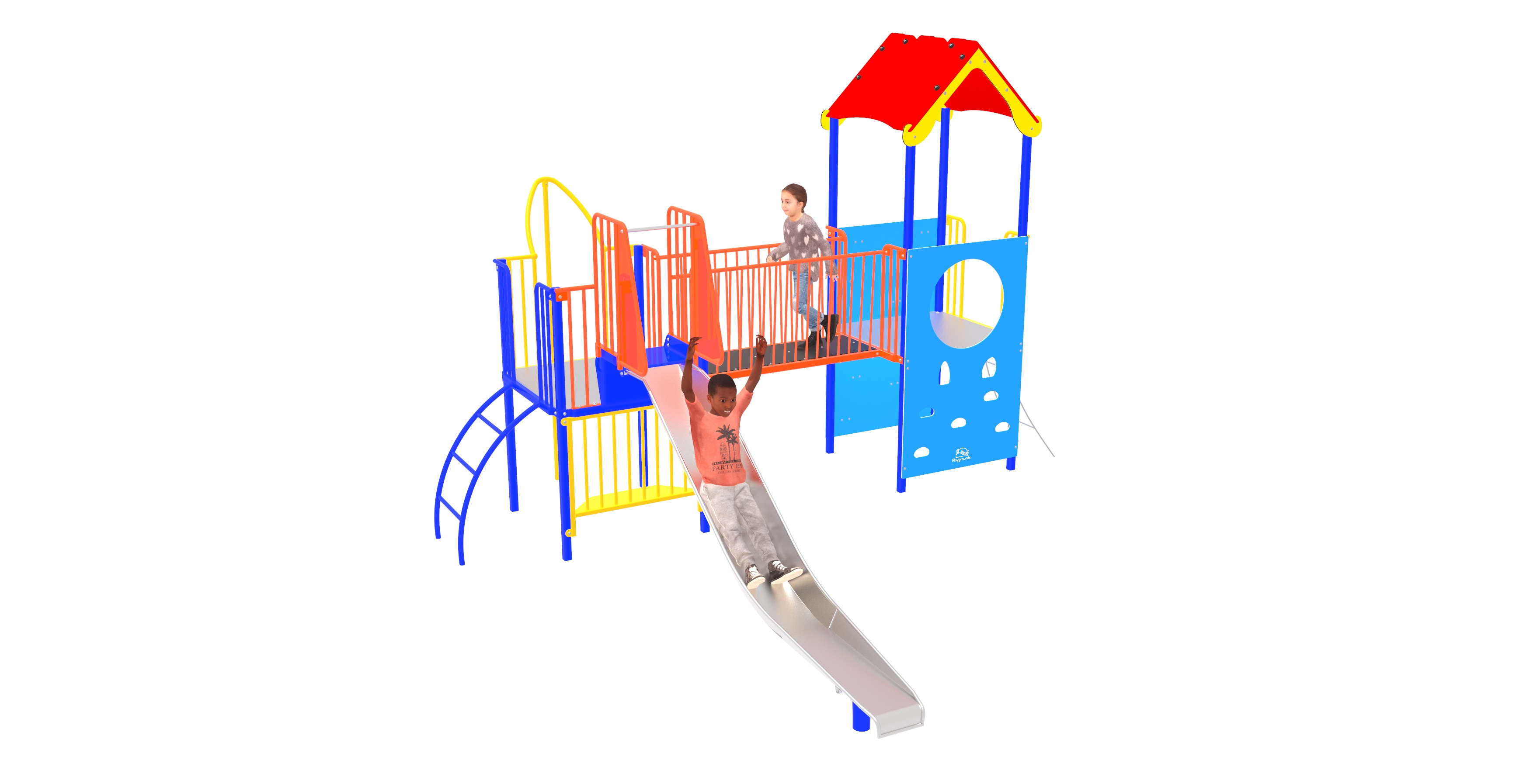 List of Features:- 2 Decks - 1.3m High Slide - Arch Ladder - Tapered Chain Ladder - Bridge - Firemans Pole - Under-Deck Seat - Climbing Wall - Plastic Roof