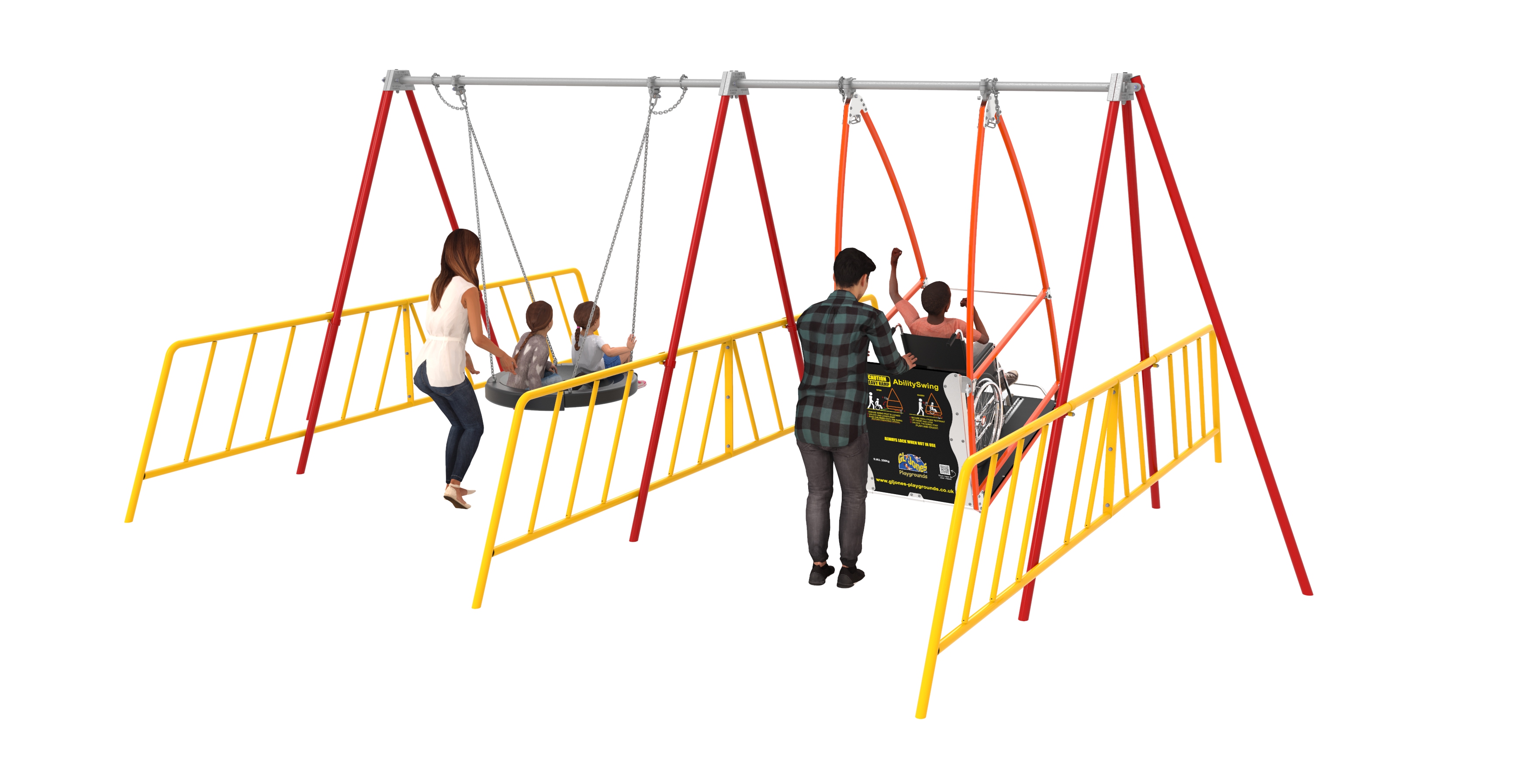 This frame is a combination of our Inclusive Cradle and BirdNest Swing Seat. The unique four point clamping system secures the wheelchair in place and the locking post is exclusively opened by an independent access key that guarantees no unauthorised use.