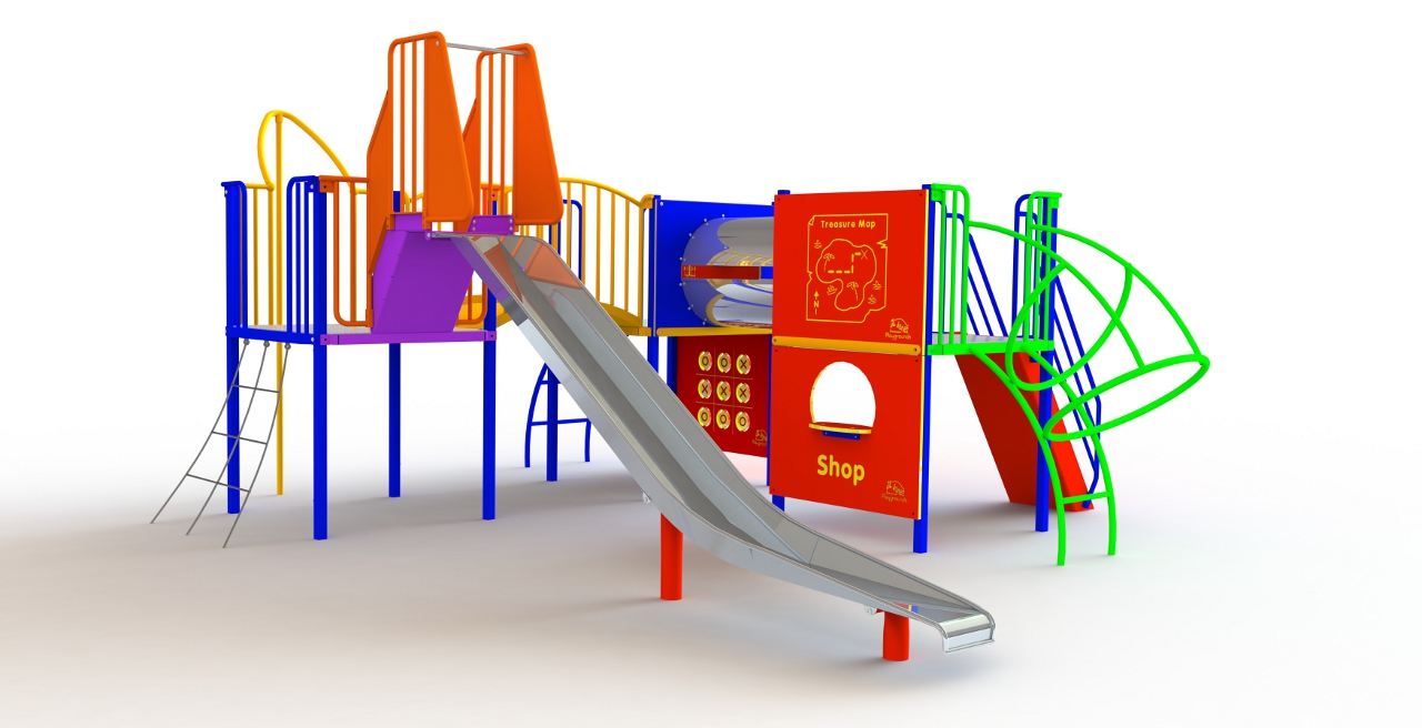 List of Features:- 3 Decks - 1.5m High Slide - Staircase - Tapered Chain Ladder - Arch Bridge - Vertical Infilled Panel - Loop Ladder - Firemans Pole - Stainless & Denstec Crawl Tunnel - Plastic Steering Wheel Panel - Plastic Shop Window Panel - Noughts & Crosses Panel - Treasure Map - Compass Panel
