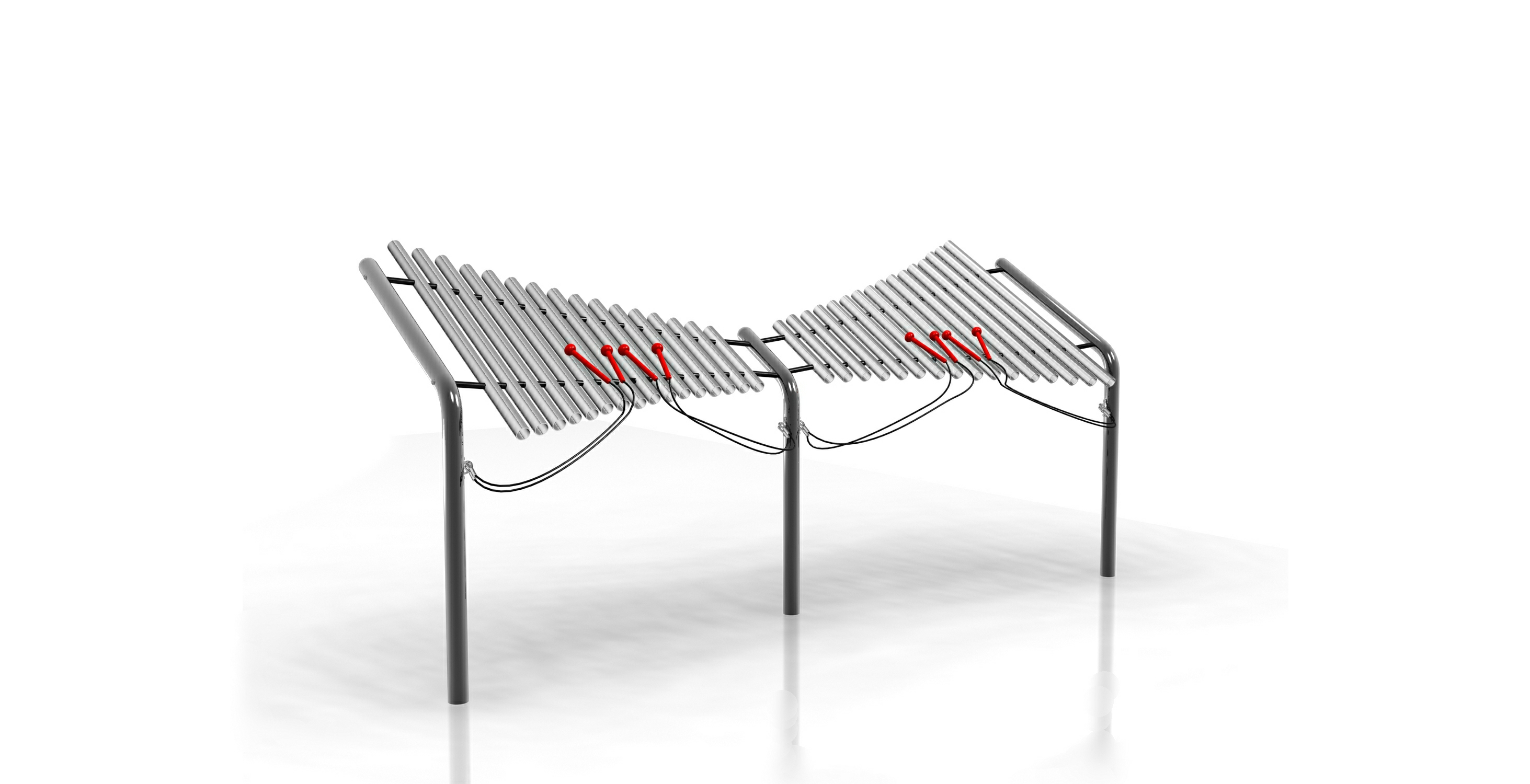 Papilio – with a name derived from the resemblance of its elegant shape to that of the Butterfly, the Papilio is a tubular bell type metallophone constructed using notes of anodised aluminium tubes, suspended by stainless steel cables and supported by a stainless steel frame.