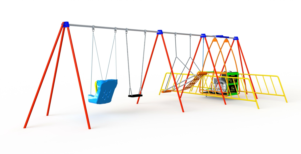 This frame can take a combination of our swing seat options, which means you can mix and match with wheelchair and traditional swing seats and enable children of all abilities to play together. The unique four point clamping system secures the wheelchair in place and the locking post exclusively opened by an independent access key guarantees no unauthorised use.